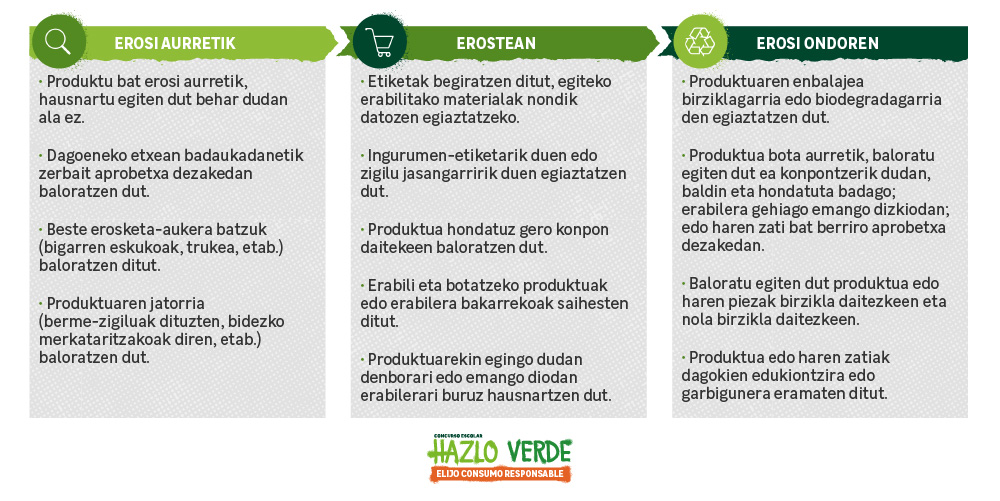Deskargatu PDFanKontsumo arduratsua erosketa gogoetatsuko prozesu bat da; prozesu horretan, pertsonak pentsatu egiten du aurretik honakoen inguruan: